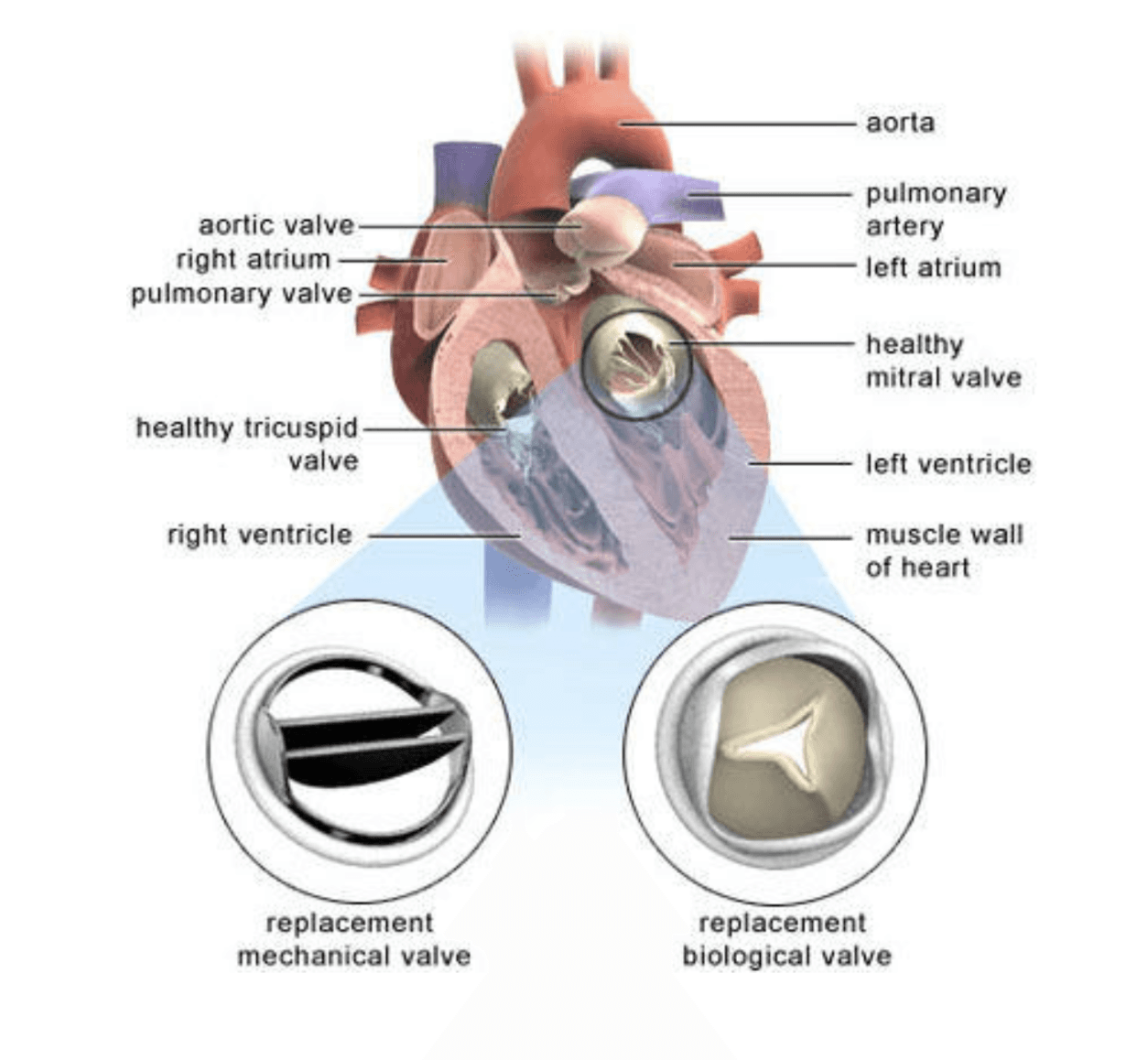 - Протезиране на митрална клапа: При тази операция увредената клапа се заменя с изкуствена (механична или биологична).
